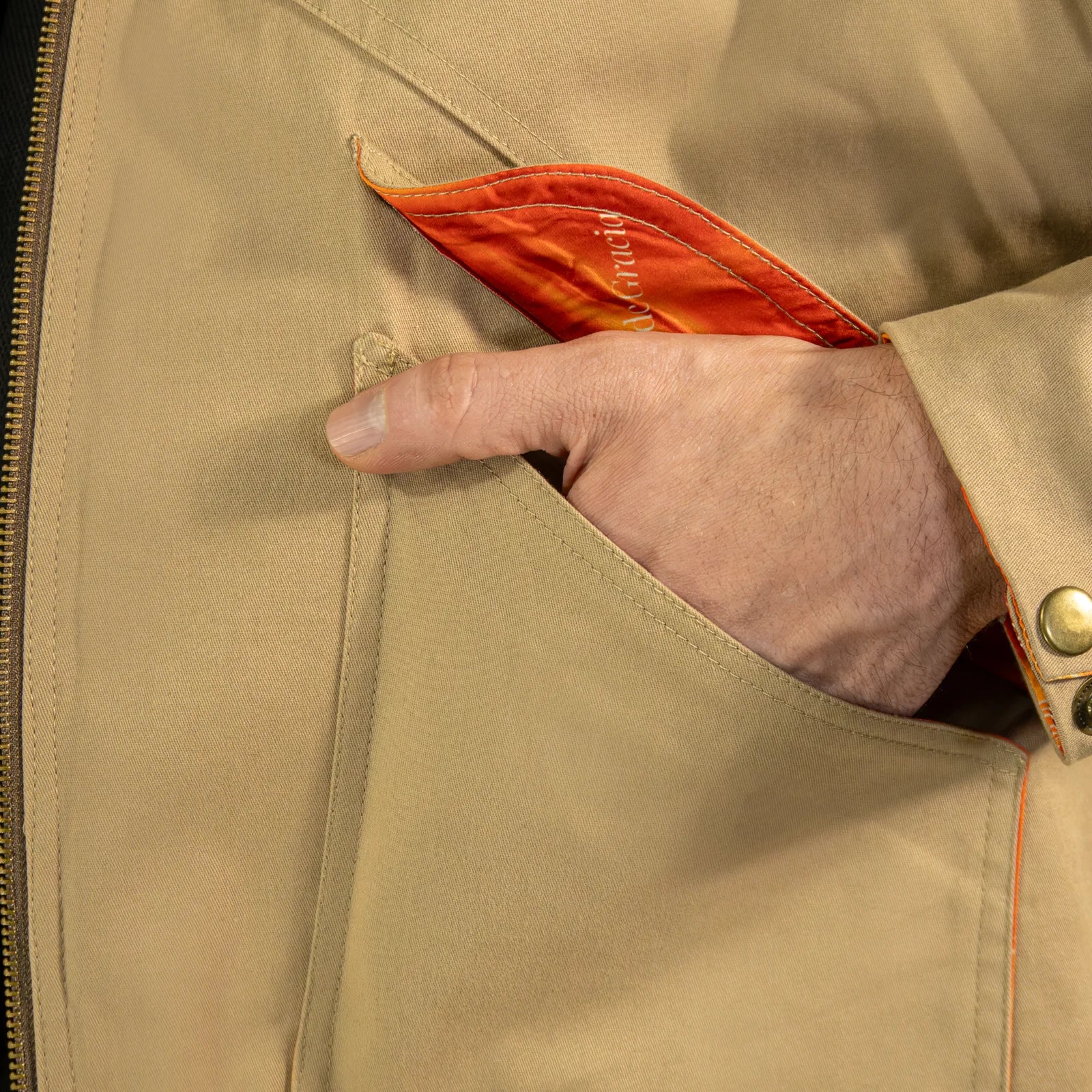 En la espalda cuenta con un bordado monocromático de alta calidad, que aporta concepto a nuestra primer work jacket.